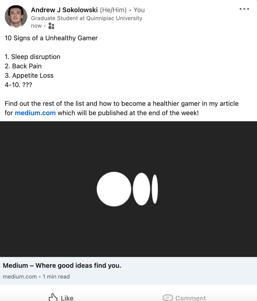Firstly, it is required to acknowledge the legitimacy of video games as a part of the human experience. In 2020, Harvard’s Dr. Peter Grinspoon published an article titled, “The Health Effects of Too Much Gaming.” The article begins, “While gaming can be a fun distraction or hobby (and is even becoming a competitive sport on many college campuses), there are health risks that come from too much gaming.” (Grinspoon, 2020) Categorizing video games as a “fun distraction” to establish its context completely delegitimizes video games as a meaningful way to spend time. Video games are joy-invoking and bond-strengthening. If those traits don’t qualify something as a meaningful way to spend time, I don’t know what does. Although this essay will rely on academia, it is important to understand that even at the highest level, our scholars have fallacies in their writing regarding video games.
